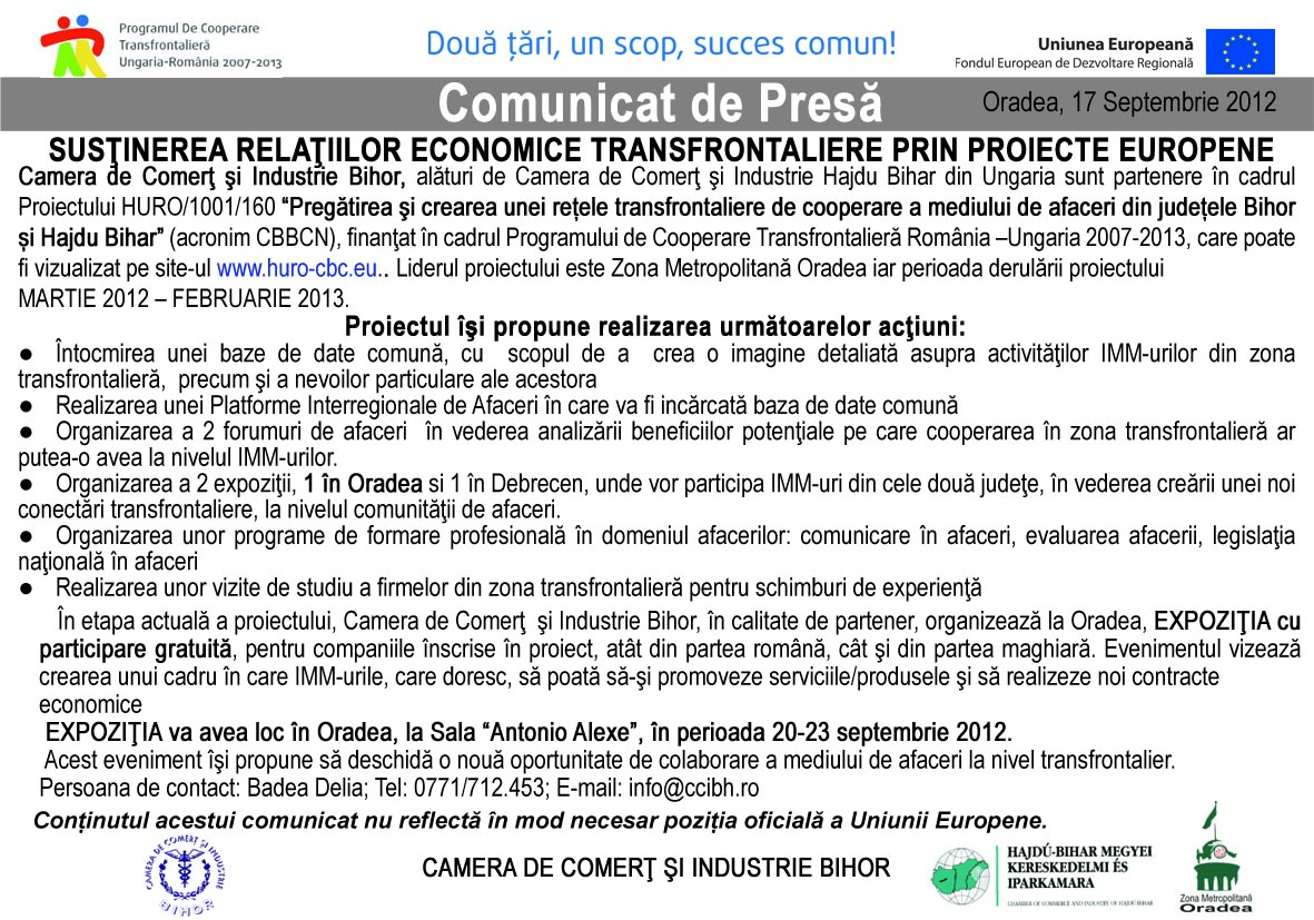 Comunicat de presa Camera de Comert si Industrie Bihor - 17-09-2012